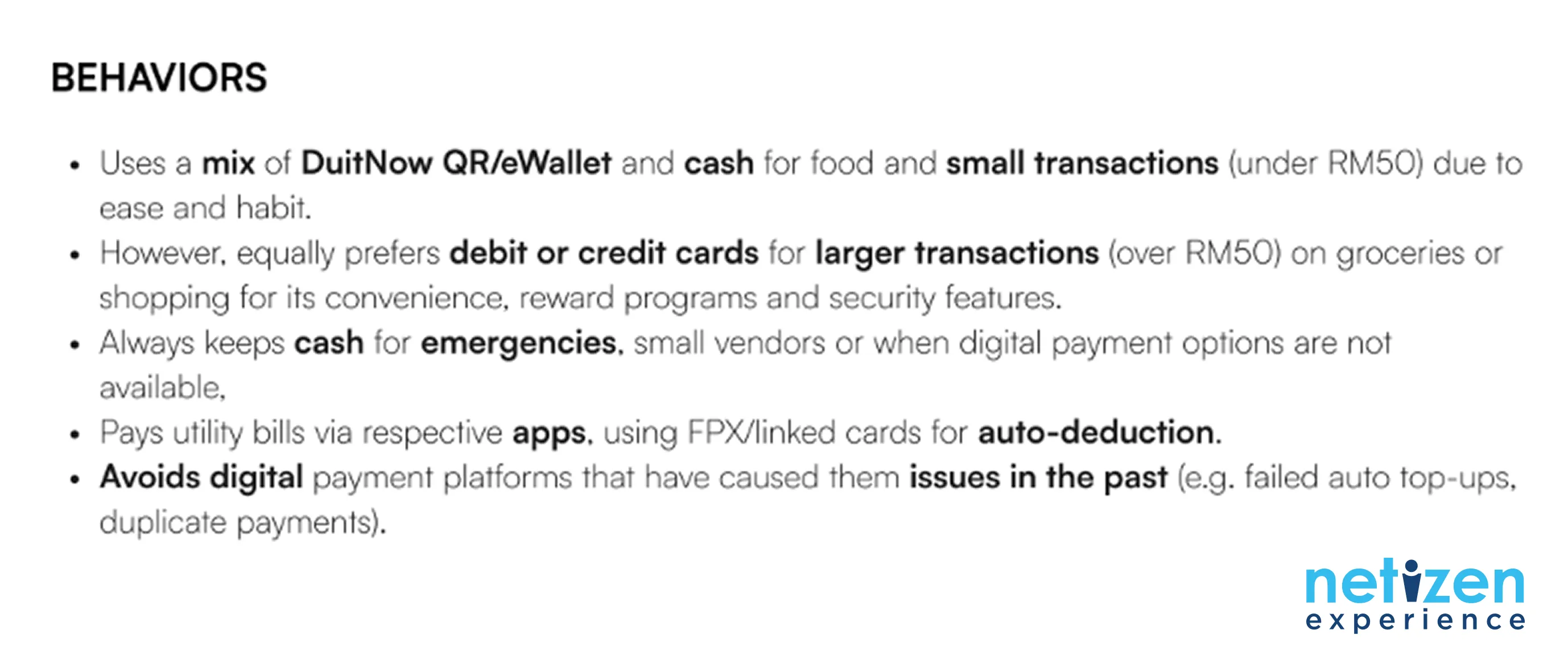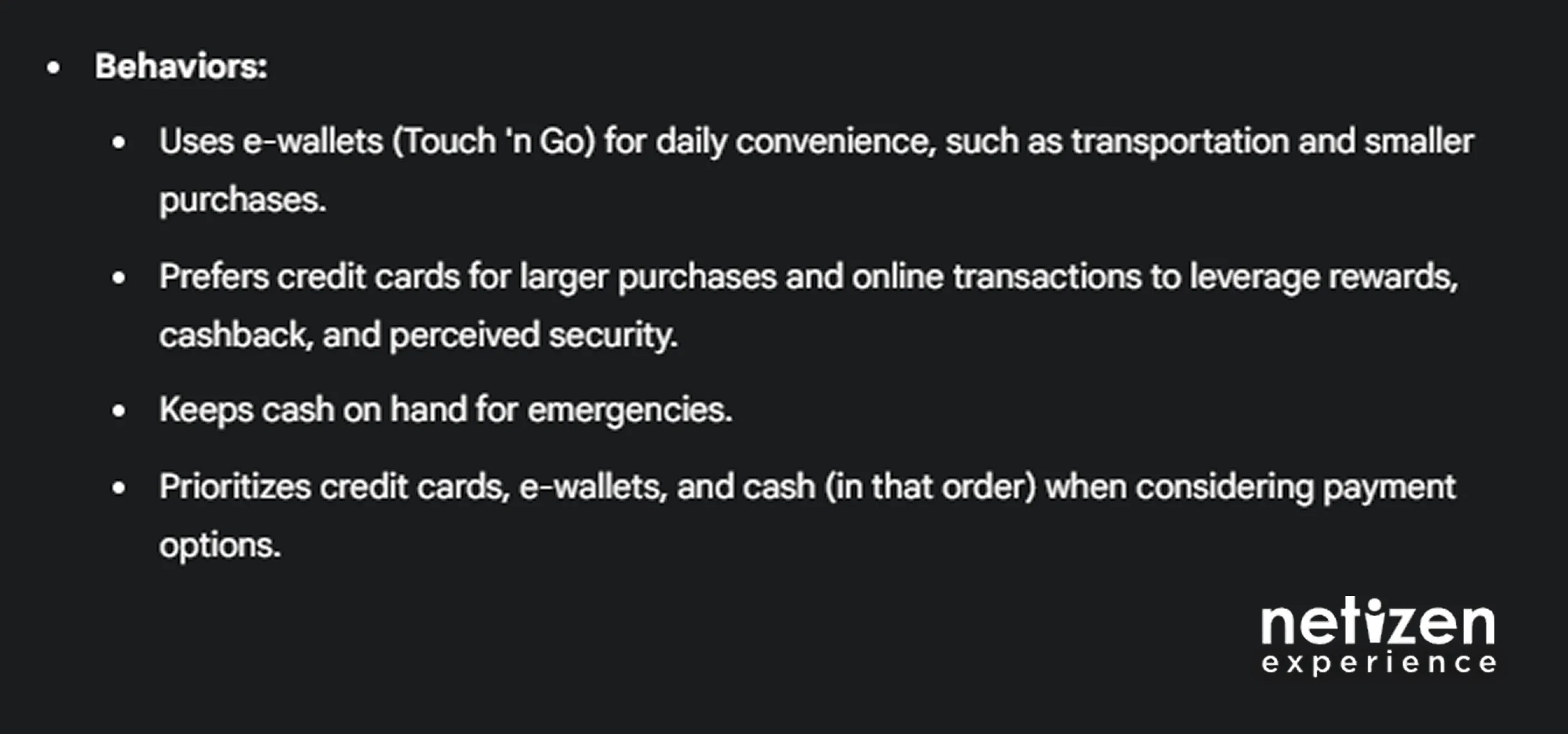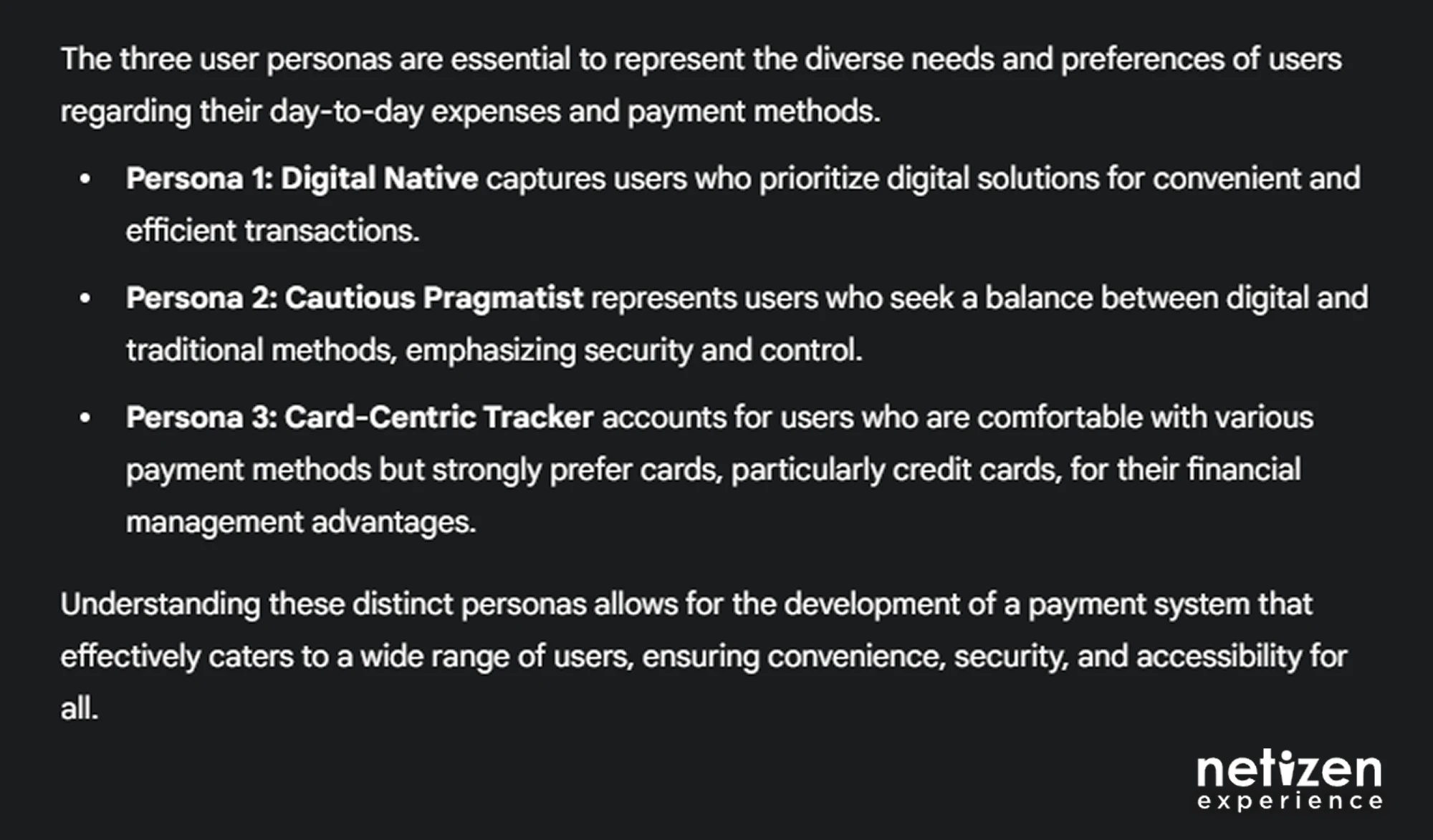 Let’s start with good things about Gemini first: in most cases, Gemini was spot-on. The user personas closely align with my own analysis. My final outcome also revealed three distinct user personas, shaped by their preferred payment methods and underlying attitudes.